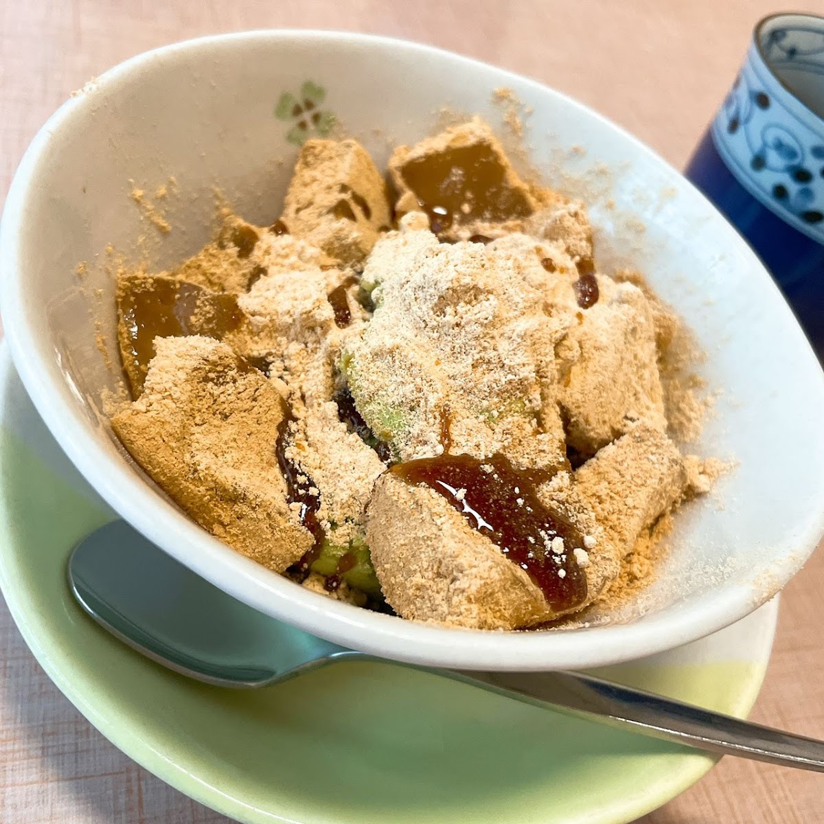 Another highlight is the わらびモチ (Warabi Mochi), a traditional Japanese dessert made from bracken starch, which is served with a dusting of sweet flour and syrup. It’s a great way to end your meal on a refreshing note.